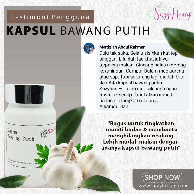 Garlic Suzyhoney Kapsul Bawang Putih Asli Suzyhoney Menurunkan Kolestrol Membuang Angin Dan Ubat Resdung Shopee Malaysia