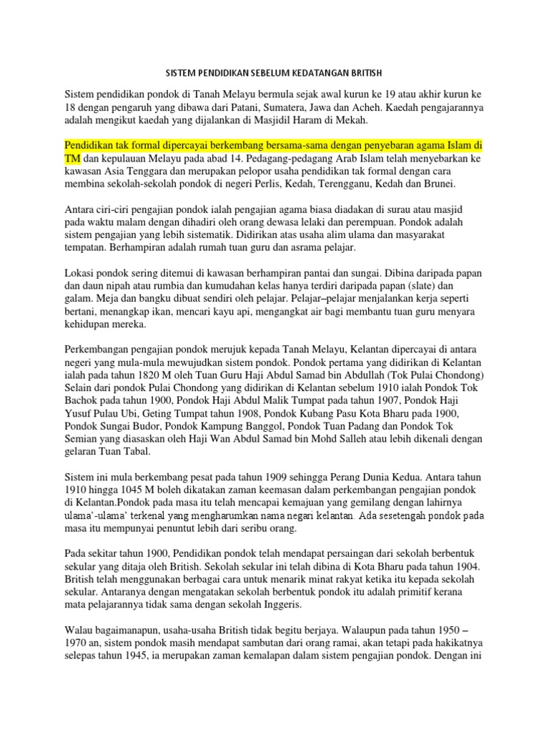 Sistem Pendidikan Sebelum Kedatangan British Pdf